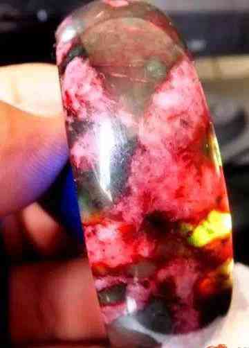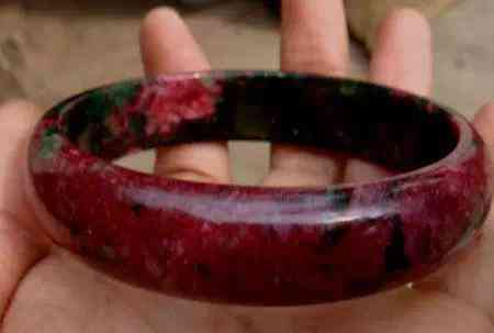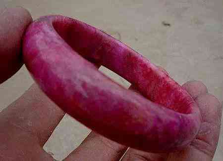 這是山東(濰坊)產(chǎn)瑪瑙手鐲,乍看與挑花玉很相似。但仔細(xì)看它是有條帶結(jié)構(gòu)的。