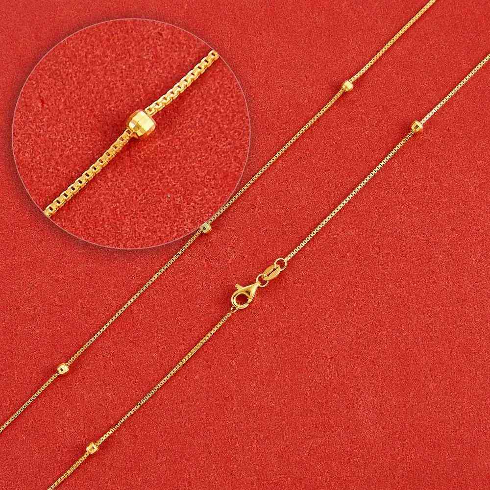 6、間珠盒仔鏈:顧名思義,就是盒仔鏈搭配珠子的組合,整體設(shè)計比較時尚,即使不搭配吊墜也不會顯得單調(diào)乏味。