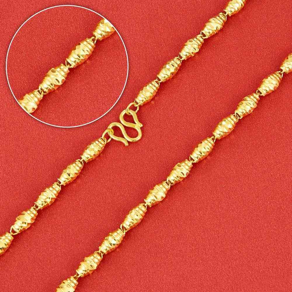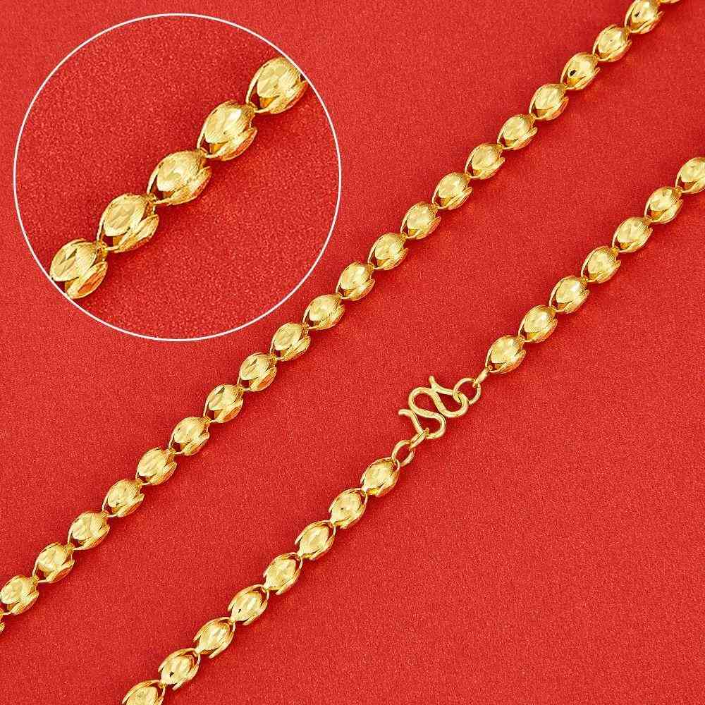 17、橄欖珠項鏈:由一顆顆橄欖珠串聯(lián)而成,多為空心設(shè)計,金輕顯大。