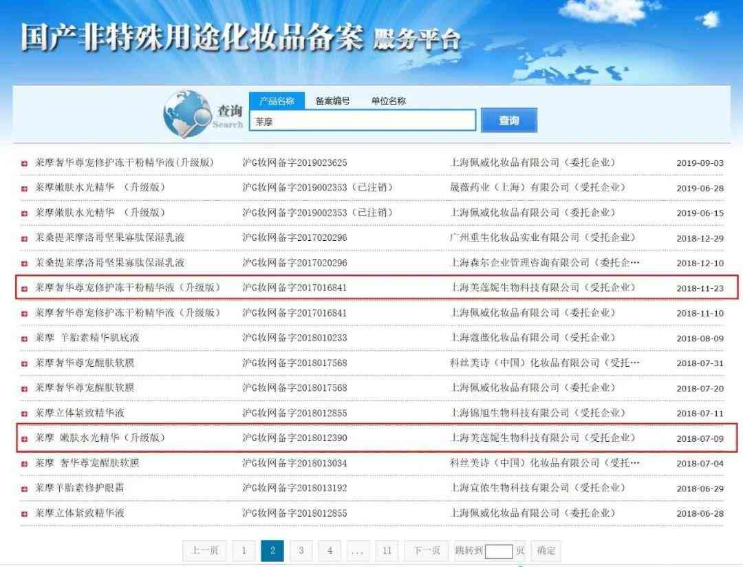 據(jù)國(guó)產(chǎn)非特殊用途化妝品備案服務(wù)平臺(tái)信息顯示,美蓮妮生物曾代工萊摩品牌旗下的奢華尊寵修護(hù)凍干粉精華液(升級(jí)版)和嫩膚水光精華(升級(jí)版)兩款產(chǎn)品。而萊摩正是知名美妝連鎖唐三彩的自有品牌之一。