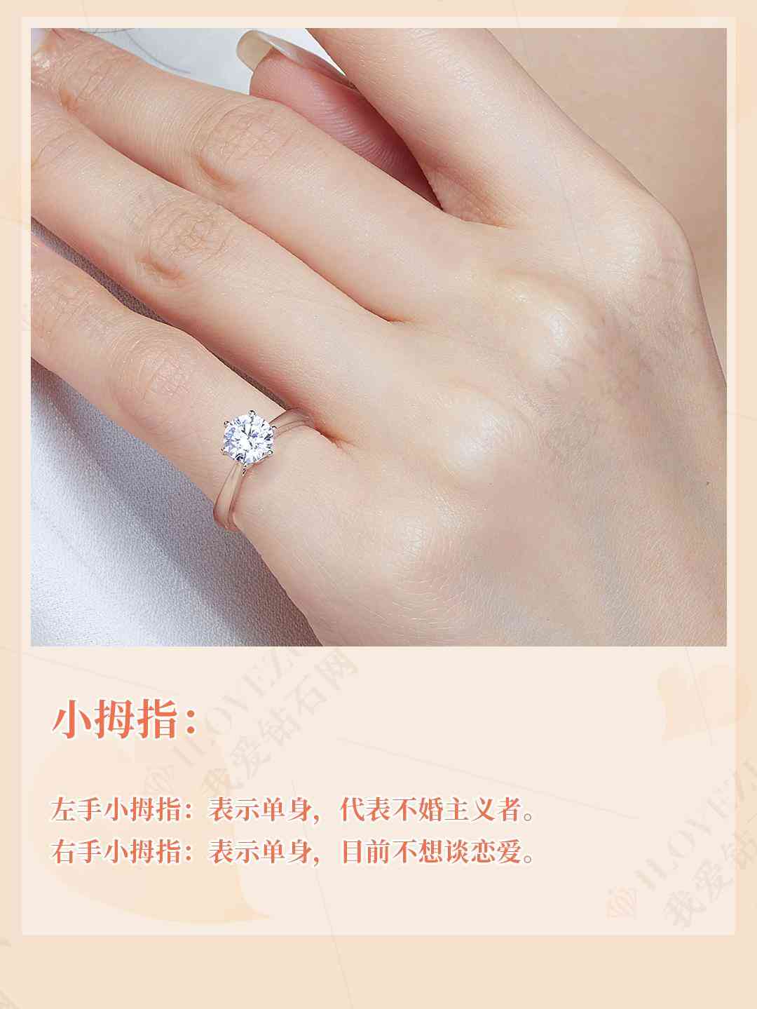 由于小指在大多數(shù)宗教或文化中不具有重要意義,因此人們常常將裝飾戒指戴在這個(gè)手指上,凸顯自己的時(shí)尚感,無(wú)論何時(shí)加上這一個(gè)小小的戒指都能夠提升你的搭配效果。