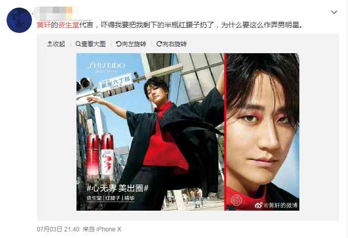 資生堂是想不開要毀掉自己,還是金主爸爸要毀掉黃軒,這是一個難題。
