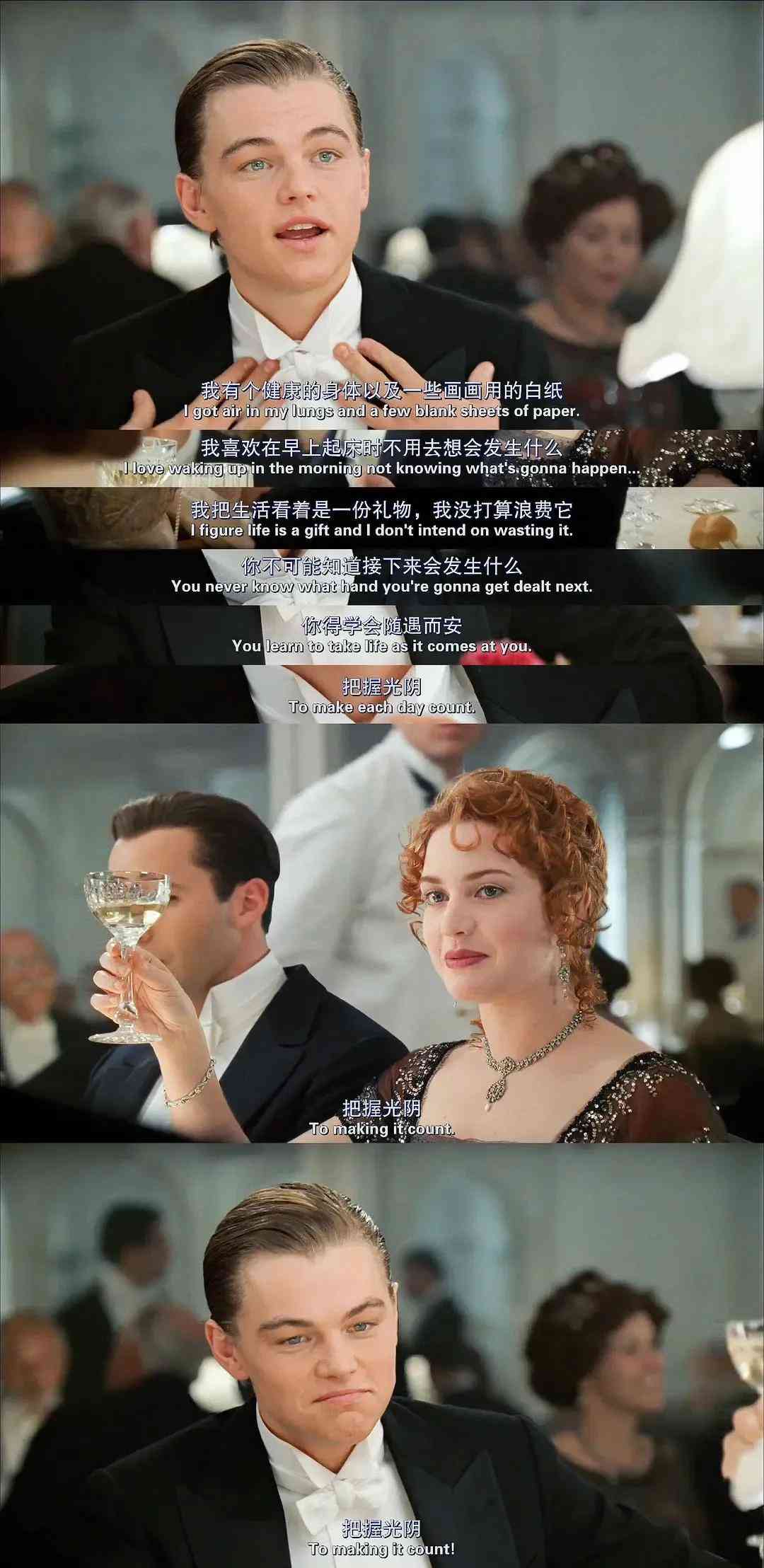 杰克借來一套西服前來參加晚宴,面對卡爾的刁難,他總能機智應(yīng)對,化解尷尬,中途離開之時給露絲遞了一張小紙條,成功約她出來來到平民艙里感受真正的聚會。露絲在這里.次放肆跳舞,開懷大笑,無比放飛自我,殊不知被卡爾的管家發(fā)現(xiàn),第二天遭到了卡爾的訓(xùn)斥,桌子被無情掀翻,還被警告不準(zhǔn)再跟杰克來往,著實給露絲嚇了一跳。