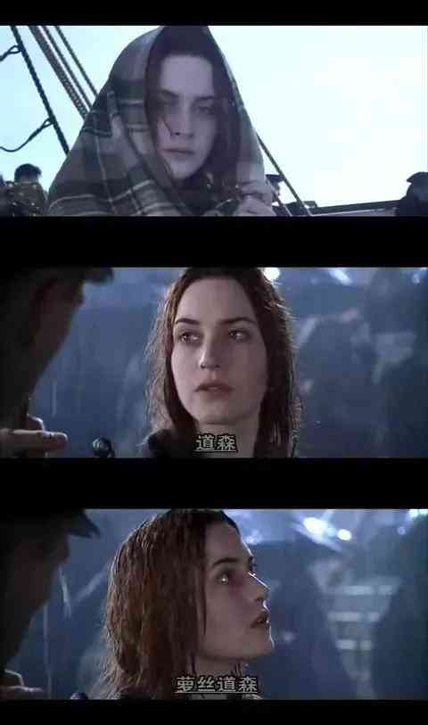 船員們努力讓出一艘救生艇,回來解救幸存的落水者,平靜的海面全是浮尸,令人觸目驚心,他們大聲喊話卻無人應(yīng)答,就在即將離開之時,露絲從昏迷中醒來,竭力嘶喊卻沒有聲音,她看著眼前已經(jīng)凍僵的杰克,堅定了活下去的決心,奮然入水游到一名凍死的船員身邊,拿起他的哨子吹響,因而獲救。抵達(dá)紐約后,她向登記船員訴說自己的名字,露絲·道森,她是帶著杰克的意志活下來的。