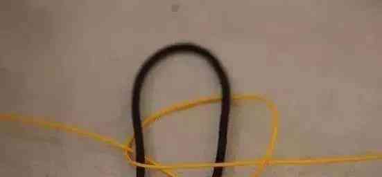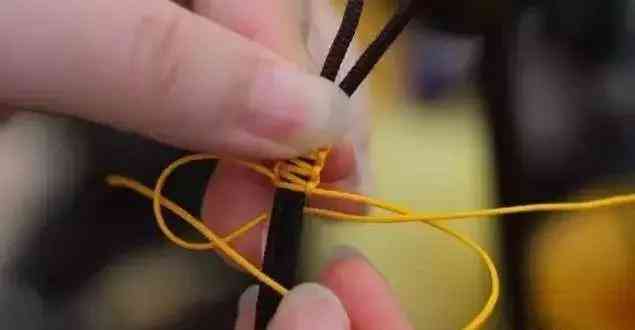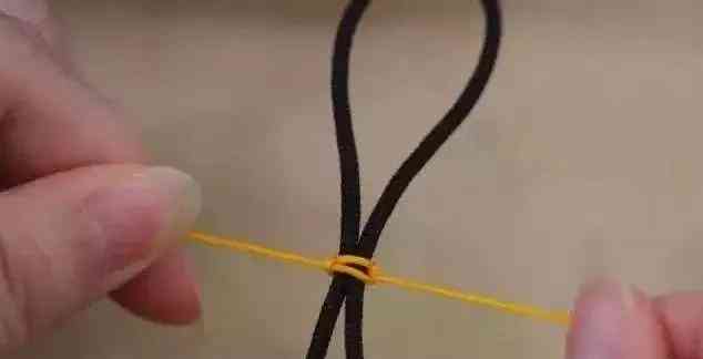 ④ 收緊,注意觀察,結(jié)打在黑色繩的右側(cè)。
