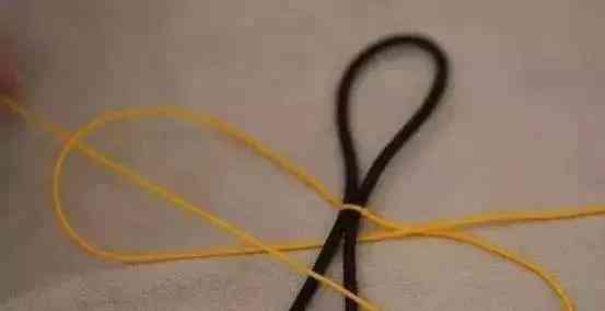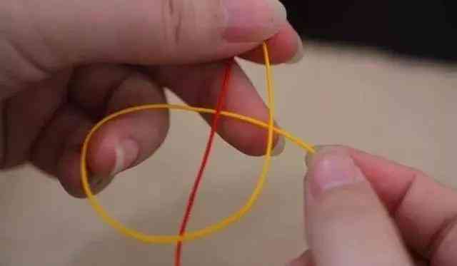 ② 黃繩右邊部分形成的圈保持不動(dòng),左邊部分下面的繩壓在上面的繩。