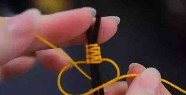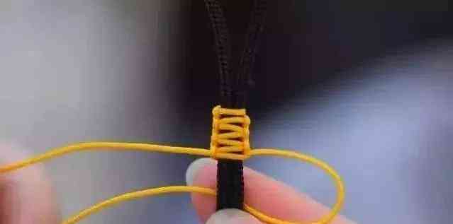 ⑦ 收緊,注意觀察,結(jié)在黑色繩左側(cè)。