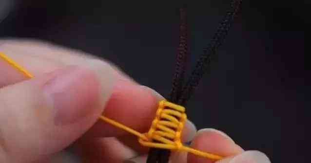 ⑨ 當(dāng)起步的兩三個(gè)結(jié)打完后,我們可以把繩結(jié)拿起來,加快效率。如下: