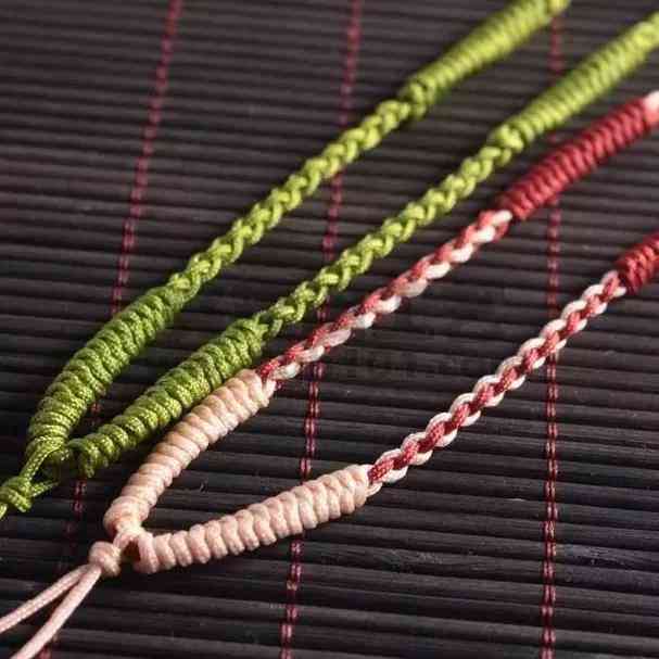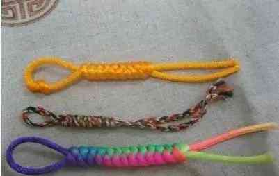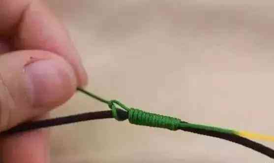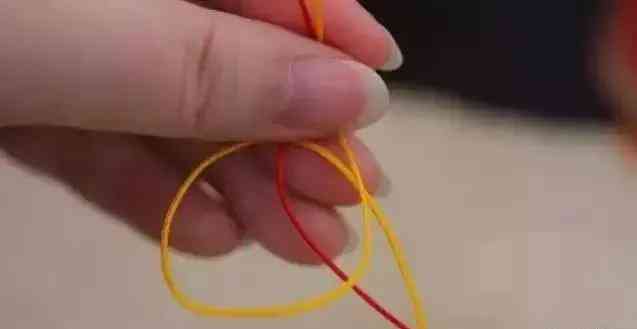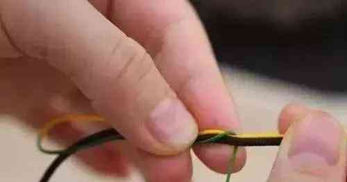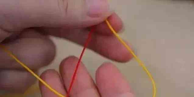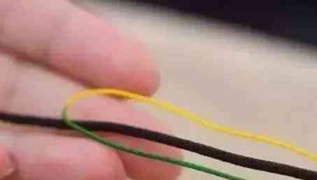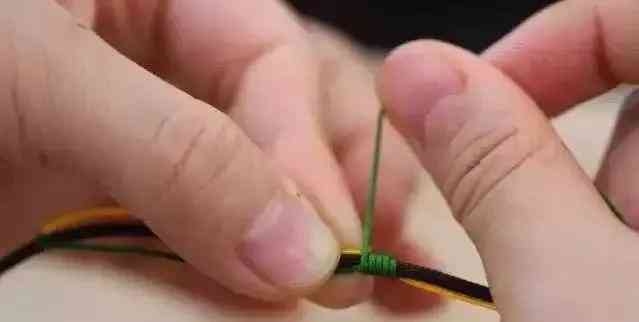 最后一種簡(jiǎn)單的編繩方法就是收尾結(jié)了,這是一種繞線繩扣的方法,適合在線頭收尾,也是最常見的各類DIY收尾的做法,PS:為了方便大家看得更清楚,這次選用雙色線來編織。
