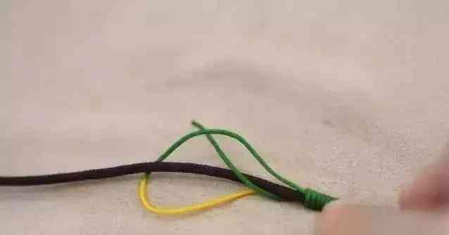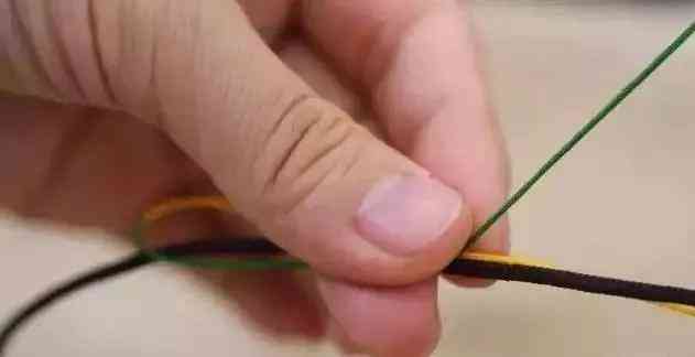 ②任意選一根細(xì)繩用來繞,從上往下壓著繞(我們選擇綠色這一頭)