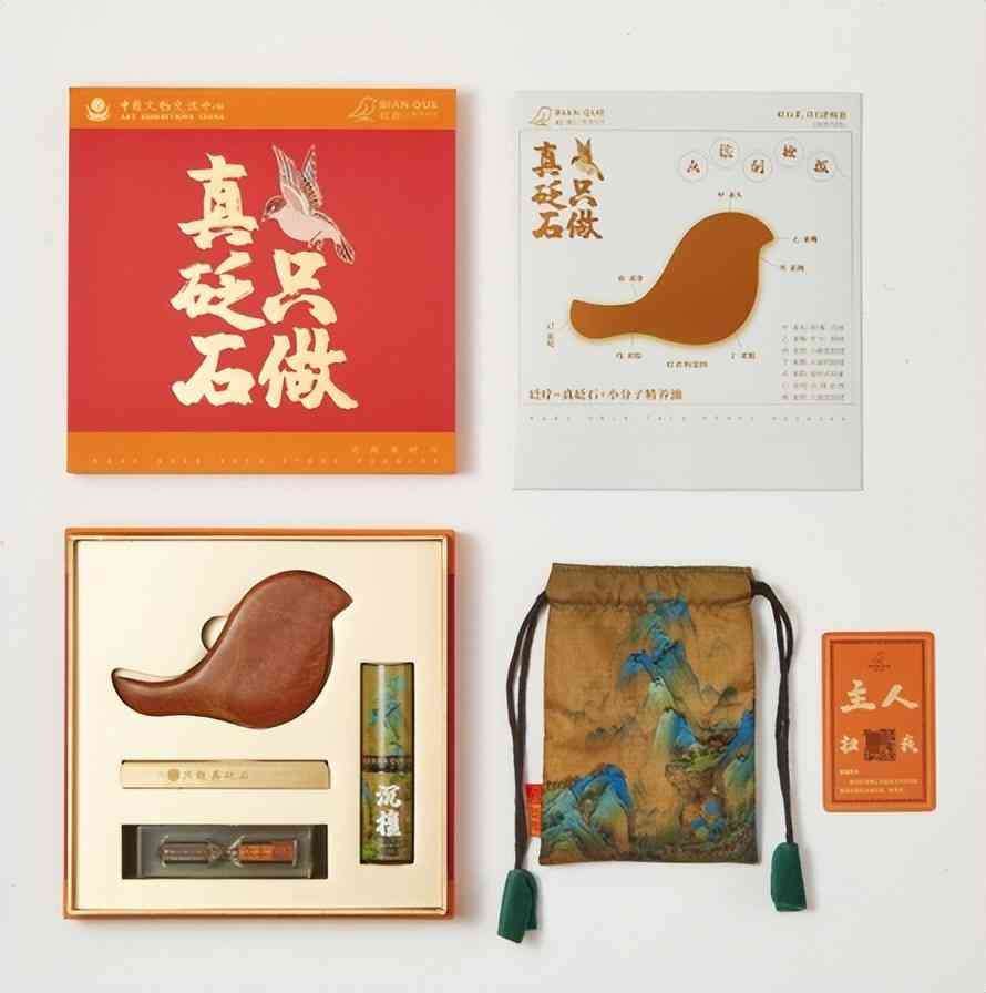 只采用山東泗水之濱馬頭山“泗濱砭石”制作產品的“砭雀”,是山東沐熙生物科技有限公司推出的“中華文化復興品牌”。與中國文化交流合作中心聯(lián)合出品的《砭雀真砭石套盒》更是做工考究,還有《千里江山圖》聯(lián)名的絲絨袋、砭雀電子收藏認證卡等7件產品,是不可多得的真砭石佳品?!般魹I砭石,天地造化之靈石”。砭雀真砭石的開發(fā)、推廣與應用,使萬千普通百姓居家就可以享受砭法療養(yǎng),減輕小病小痛的折磨,昭示著其醫(yī)學、文化、收藏價值,還會不斷提升。