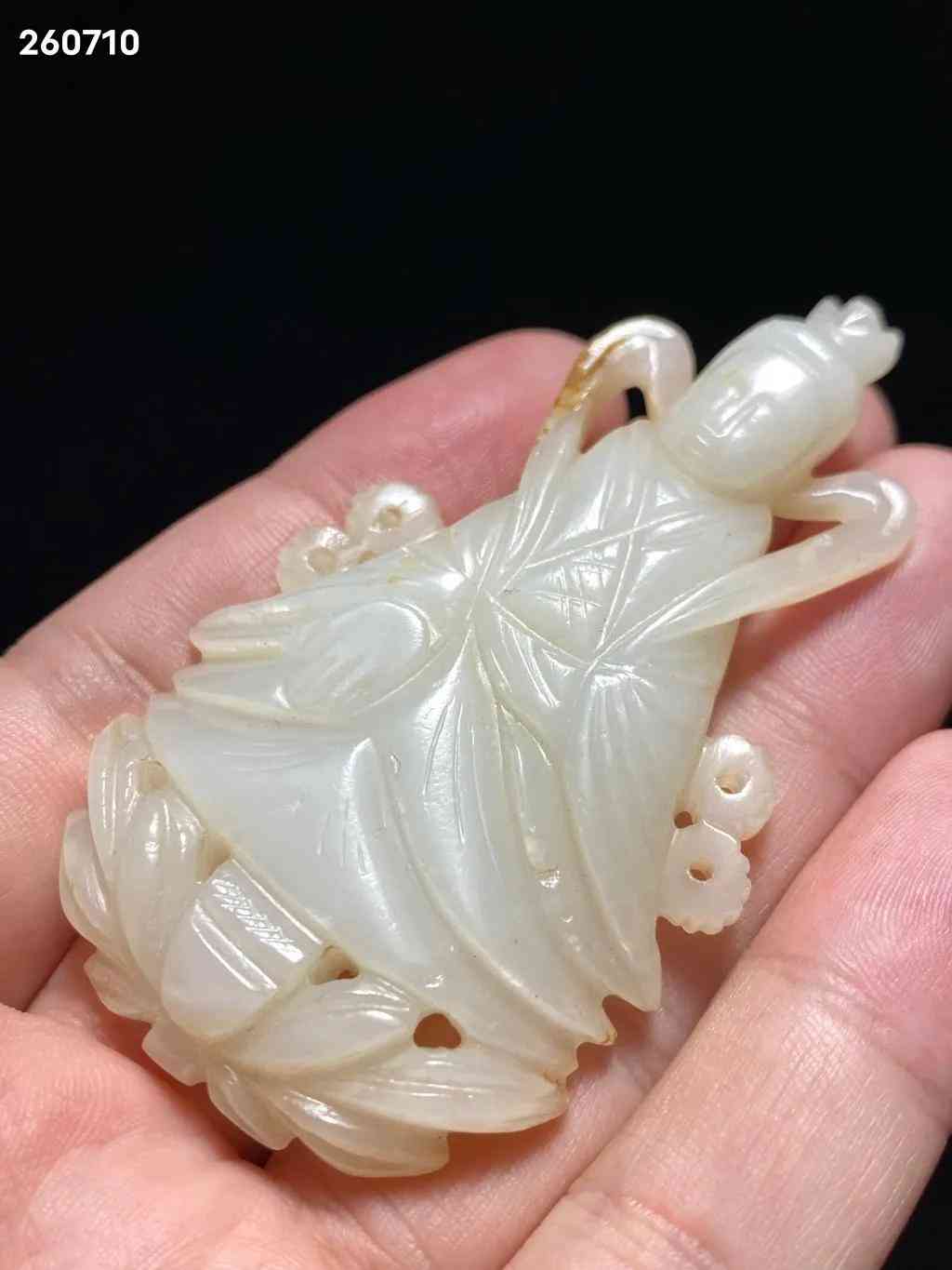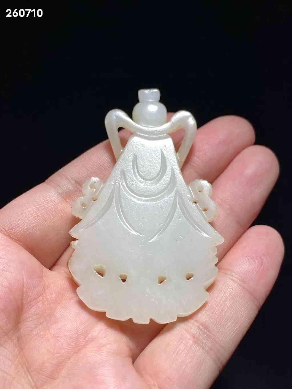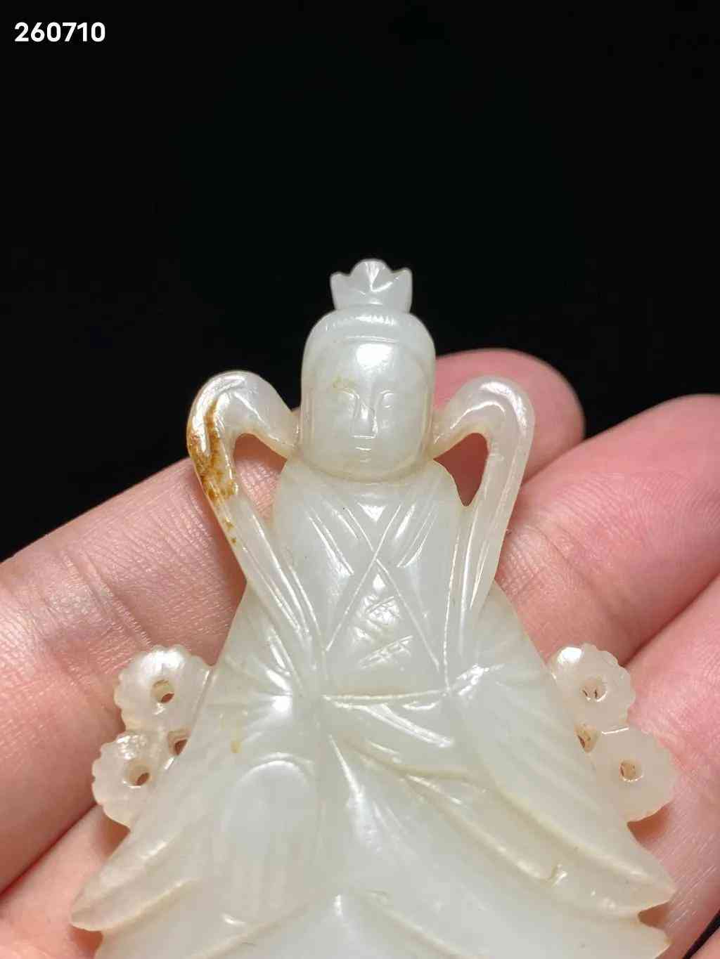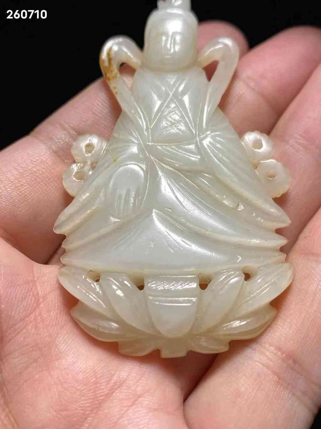 導(dǎo)讀: 明 和田玉籽料 白玉 玉蓮花座佛 玉觀音 掛件:長(zhǎng):4.2 寬:0.8 高:7.2 厘米 重:35克 玉質(zhì)潔白溫潤(rùn),質(zhì)地...