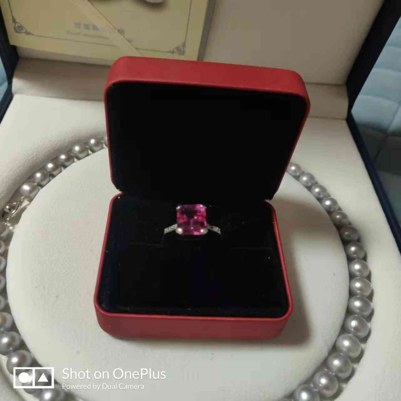 對(duì),就是這個(gè)粉色托帕石戒指。這個(gè)粉色的托帕石看起來(lái)像天然的東西,所以我更覺(jué)得那對(duì)藍(lán)色耳環(huán)是玻璃的。