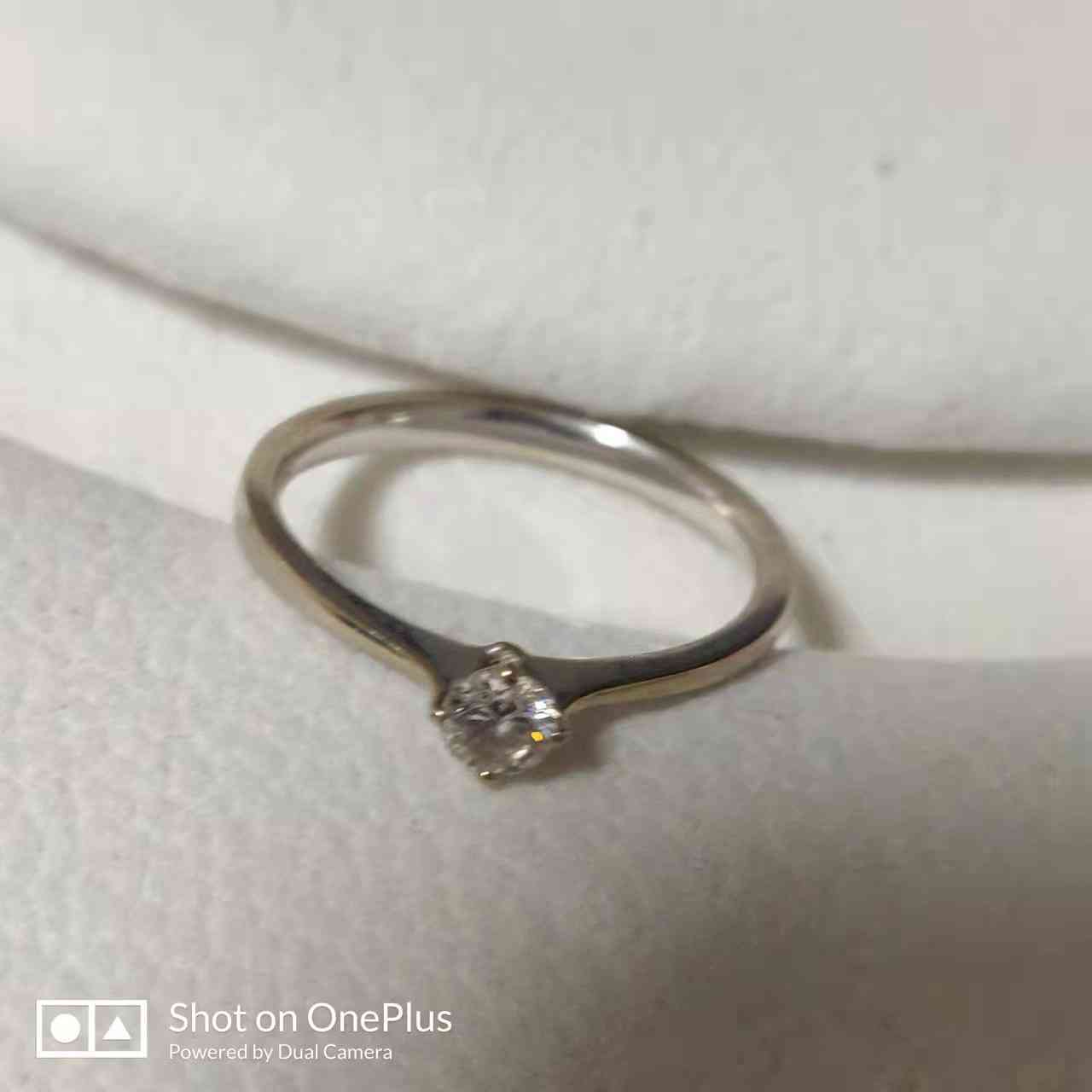 這個(gè)單鉆的是周大福的品牌,10年前網(wǎng)購(gòu)的。打折后的價(jià)格是3600元,20分的大小。別看鉆石很小,但是卻是異常閃亮,工作休閑戴著低調(diào)又精致,我覺(jué)得很值。雖然我的一些同事說(shuō)這么小的鉆石有點(diǎn)貴了,但是我覺(jué)得這個(gè)是真的。