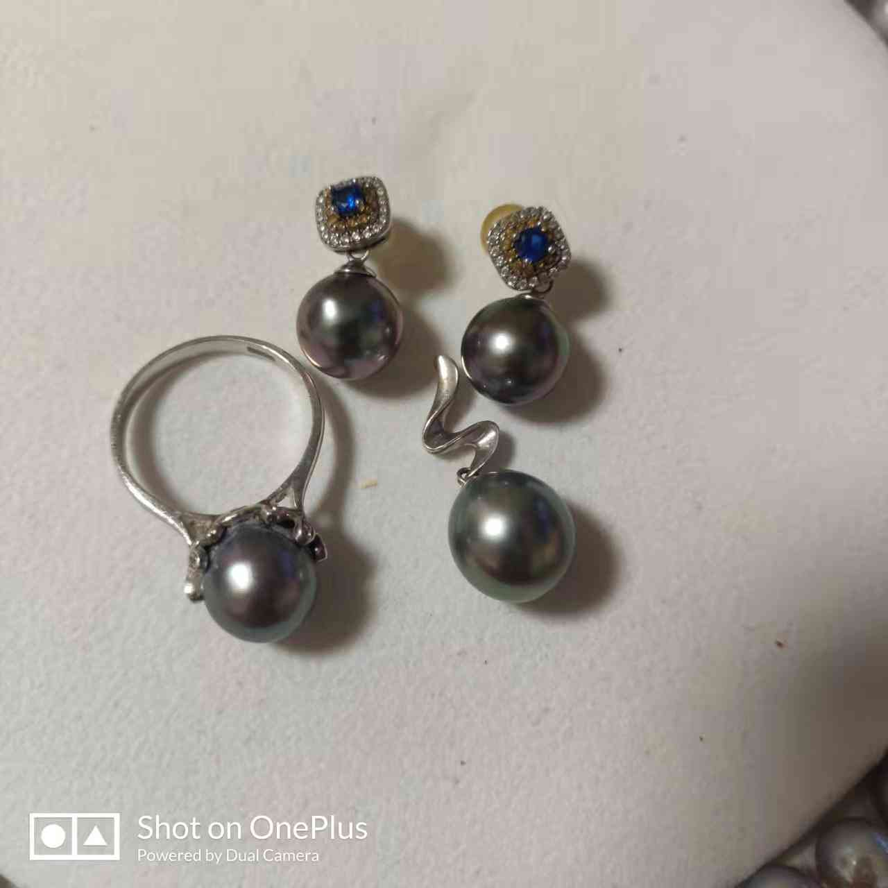 耳環(huán)和戒指合起來(lái)的價(jià)格是1500元左右,銀鑲嵌,所以便宜一些,這個(gè)我能肯定不是大溪地的,至于哪的珍珠,是不是黑珍珠我不知道。