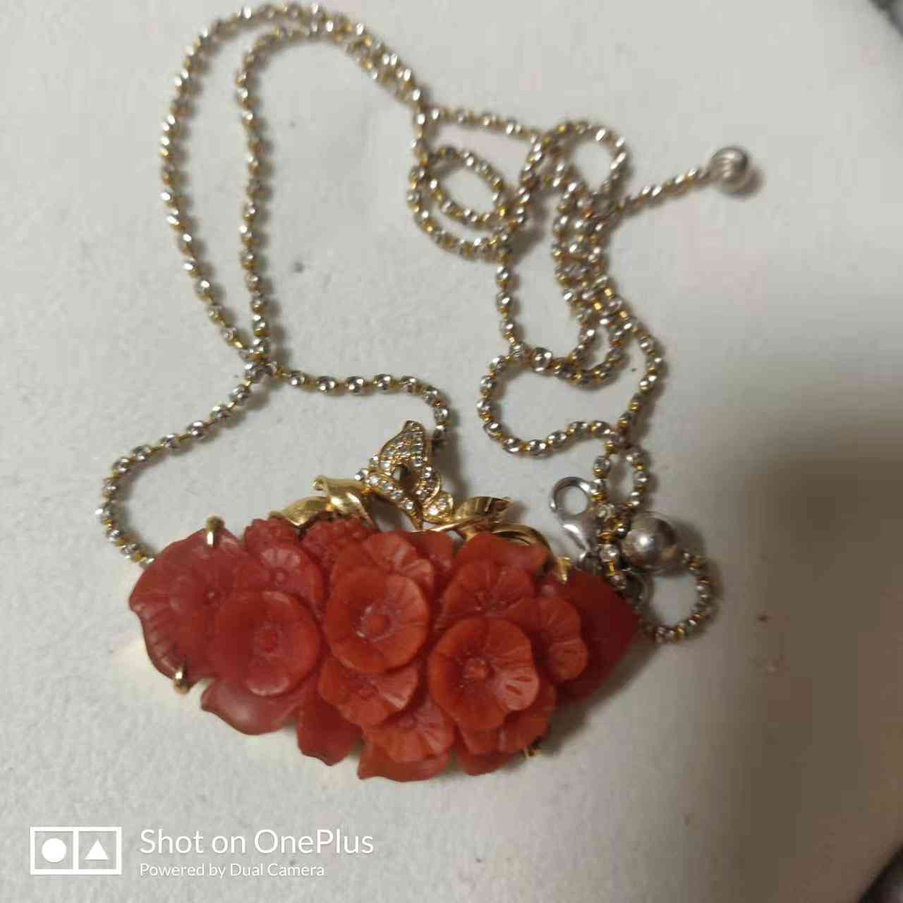 去年牛年,中國(guó)人的本歷年喜歡戴點(diǎn)紅色,于是我在網(wǎng)上購(gòu)買了這個(gè)南紅吊墜。在一個(gè)專門賣南紅的旗艦店上購(gòu)買的,價(jià)格打折后3200元,為了配這個(gè)吊墜又買了這個(gè)K金的項(xiàng)鏈,價(jià)格是2400元左右。
