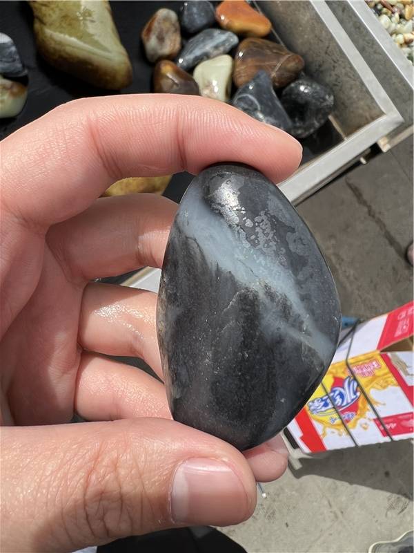 這個青花原石,墨度好,白肉近一級,局部有僵皮,要價(jià)三萬多。