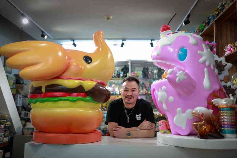 作為潮玩玩家和收藏家,李國(guó)慶從2002年開始收藏潮流玩具,被外界稱為“國(guó)內(nèi)潮流玩具的教父”,還出了幾本潮玩指南。他會(huì)在國(guó)外的網(wǎng)站搜尋喜歡的藝術(shù)家作品,在過去,支付和物流不如今天便捷,有時(shí)要等半年貨才送到。他的店里從上到下擺滿了潮玩藝術(shù)品,這么多年砸進(jìn)去了幾百萬元。