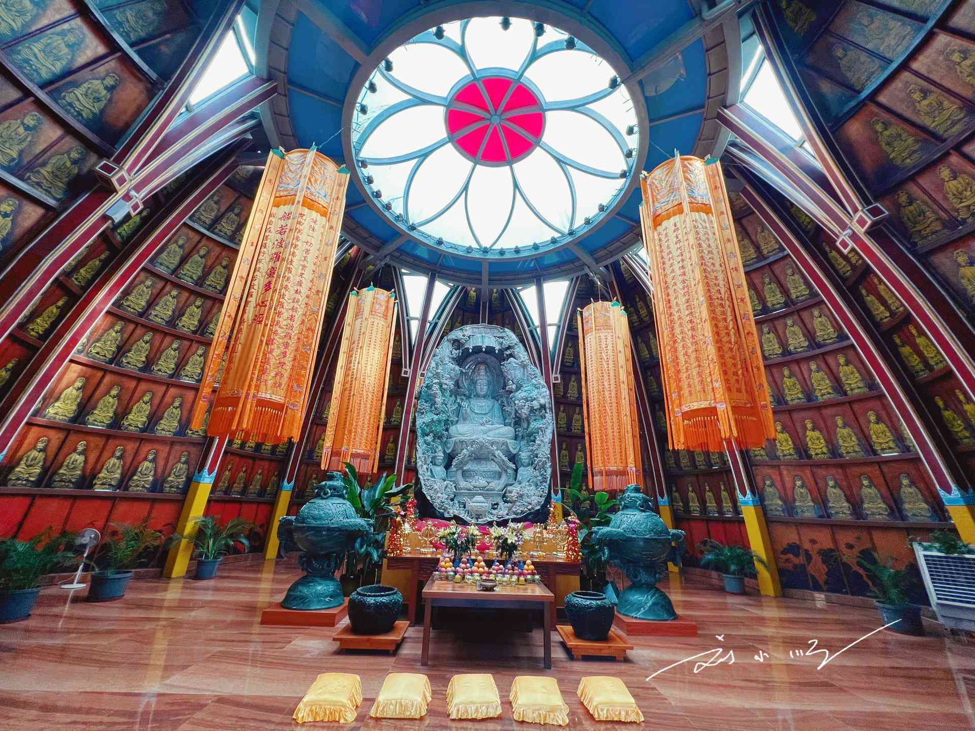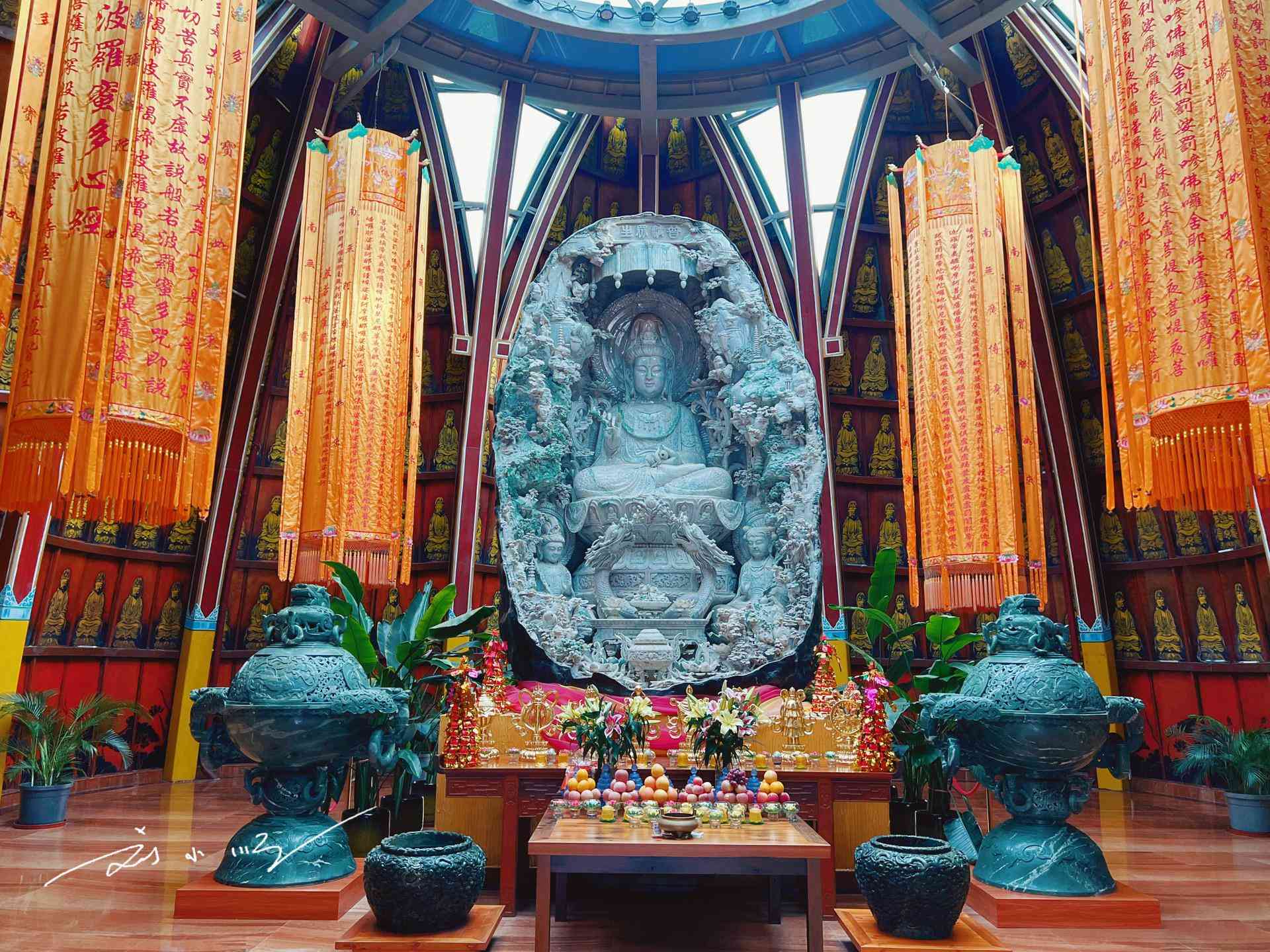 這尊巨型“翡翠玉觀音”就在一座名叫“自在天”的宮殿里,而這座宮殿的外形做成了蓮花形狀,感覺格外莊嚴。