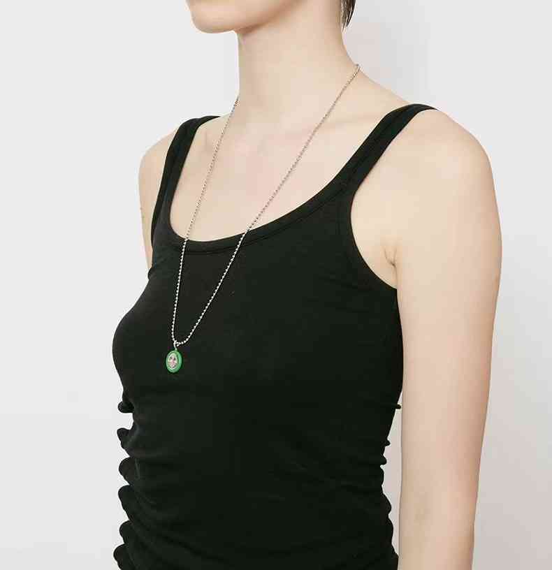 這款電鍍琺瑯笑臉項(xiàng)鏈由銅鍍18K金的笑臉和外圍的彩色琺瑯構(gòu)成,其中最特別的就是笑臉外圍的琺瑯裝飾,五顏六色的琺瑯裝飾讓笑臉看起來(lái)更個(gè)性、時(shí)尚,佩戴起來(lái)也給人一種很清新、明亮的感覺(jué),是很適合夏天顏色。