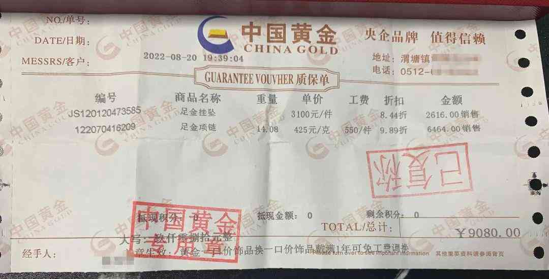 投訴者褚某在中國(guó)黃金實(shí)付款9080元購(gòu)買了一款黃金項(xiàng)鏈和吊墜,其中2616元的黃金吊墜實(shí)為“一口價(jià)”商品,克價(jià)為市場(chǎng)黃金價(jià)格的一倍以上。