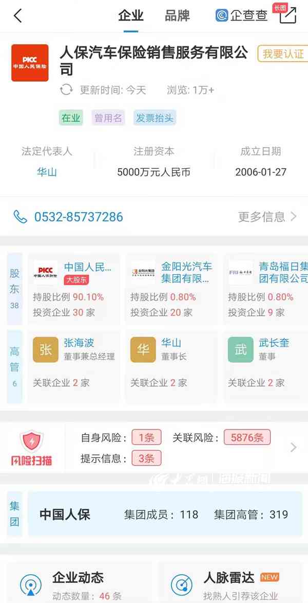 記者通過企查查平臺(tái)查詢了解,“人保車險(xiǎn)”黑龍江分公司隸屬于人保汽車保險(xiǎn)銷售服務(wù)有限公司,總公司的法定代表人為華山,神州優(yōu)車董事,現(xiàn)為中國(guó)人保財(cái)產(chǎn)險(xiǎn)執(zhí)行副總裁,兼任人保汽車保險(xiǎn)銷售服務(wù)有限公司董事長(zhǎng)。而人保汽車保險(xiǎn)銷售服務(wù)有限公司的大股東為中國(guó)人民財(cái)產(chǎn)保險(xiǎn)股份有限公司,持股比例為90.10%。