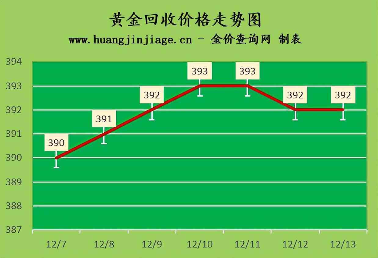 黃金回收價(jià)格392元/克,鉑金回收價(jià)格195元/克,鈀金回收價(jià)格388元/克,18K金回收價(jià)格290元/克,銀條回收價(jià)格3.9元/克。(黃金行情是波動(dòng)的,回收金價(jià)沒(méi)有固定標(biāo)準(zhǔn)。)