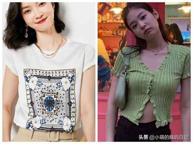 緞面不但有光澤,摸起來順滑,具有一定的垂感,穿起來與針織面料緊繃在身上的感覺是完全不一樣的,優(yōu)雅、知性、氣質(zhì),從風(fēng)格調(diào)性上看就與眾不同。左圖與右圖都是今年比較火的短袖款式,但緞面帶有印花圖案的穿起來比右圖針織短袖高級很多。