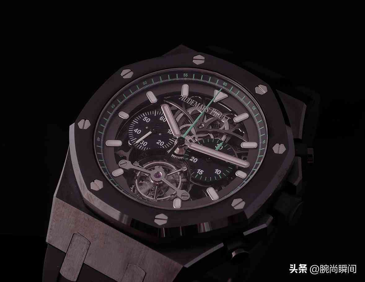 寶格麗的一個(gè)很好的替代品就是愛(ài)彼皇家橡樹(shù)陀飛輪鏤空計(jì)時(shí)碼表。 兩款腕表具有相同的功能和幾乎相同的布局,陀飛輪位于 6 點(diǎn)鐘位置,秒針位于 9 點(diǎn)鐘位置,計(jì)時(shí)分鐘位于 3 點(diǎn)鐘位置。 和 Octo Finissimo 一樣,皇家橡樹(shù)也有鏤空機(jī)芯。 然而,值得一提的是,后者具有更高水平的運(yùn)動(dòng)修飾。 其他主要區(qū)別包括材料(下圖中的示例以黑色陶瓷呈現(xiàn))以及 Octo Finissimo 幾乎薄了 6 毫米這一事實(shí)。 皇家橡樹(shù)陀飛輪計(jì)時(shí)碼表鏤空黑色陶瓷腕表僅限 100 件(可能已售罄),早在 2020 年零售價(jià)為 290,000 瑞士法郎,比鉑金 Octo Finissimo 陀飛輪計(jì)時(shí)碼表骨架高出約 70,000 瑞士法郎。