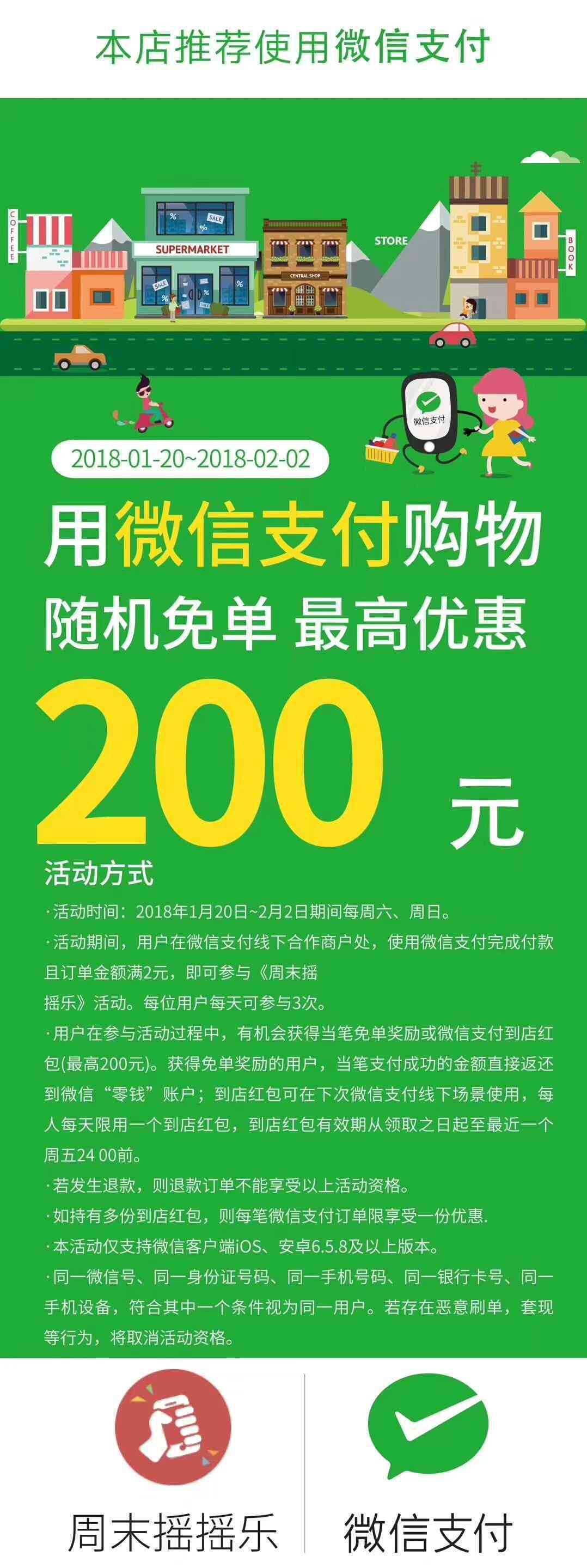 前一段時(shí)間,支付寶推出發(fā)紅包賺賞金的活動(dòng),大家都開始瘋狂的掃碼領(lǐng)紅包,每天能領(lǐng)幾塊錢,甚至幾十塊錢,每天使用馬爸爸發(fā)的紅包,買瓶水喝,是不是特別愜意!? 持續(xù)了兩三個(gè)月之后,方案越來(lái)越升級(jí),通過(guò)這一波操作,培養(yǎng)了用戶的支付習(xí)慣。終于,小馬哥也出手了。? 周末搖搖樂(lè),只要在微信支付線下合作商戶使用微信付款,即可參與周末搖搖樂(lè)活動(dòng)。不僅有機(jī)會(huì)獲得到店紅包,如果你運(yùn)氣好,還有可能獲得隨機(jī)免單機(jī)會(huì)。? 赤峰的朋友們有福了,趕快拿起手機(jī),去消費(fèi)吧!