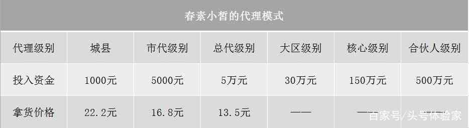 頭號(hào)體驗(yàn)家根據(jù)A提供的信息整理出的“春素小皙”代理模式
