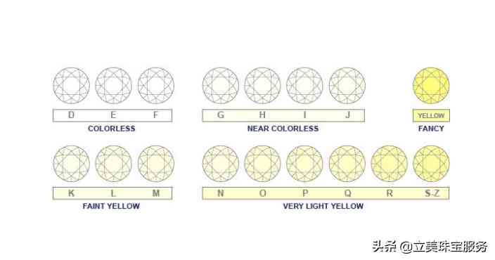 鉆石的顏色非常的重要,除了彩鉆以外,絕大部分的鉆石都是無色最好,從最高等等的D到最低等級的R,其中DEF是最高等級的一檔,GHIJ是二檔,KLM是三檔,而N-O、P-R等級的鉆石是偏黃,所以最不好。