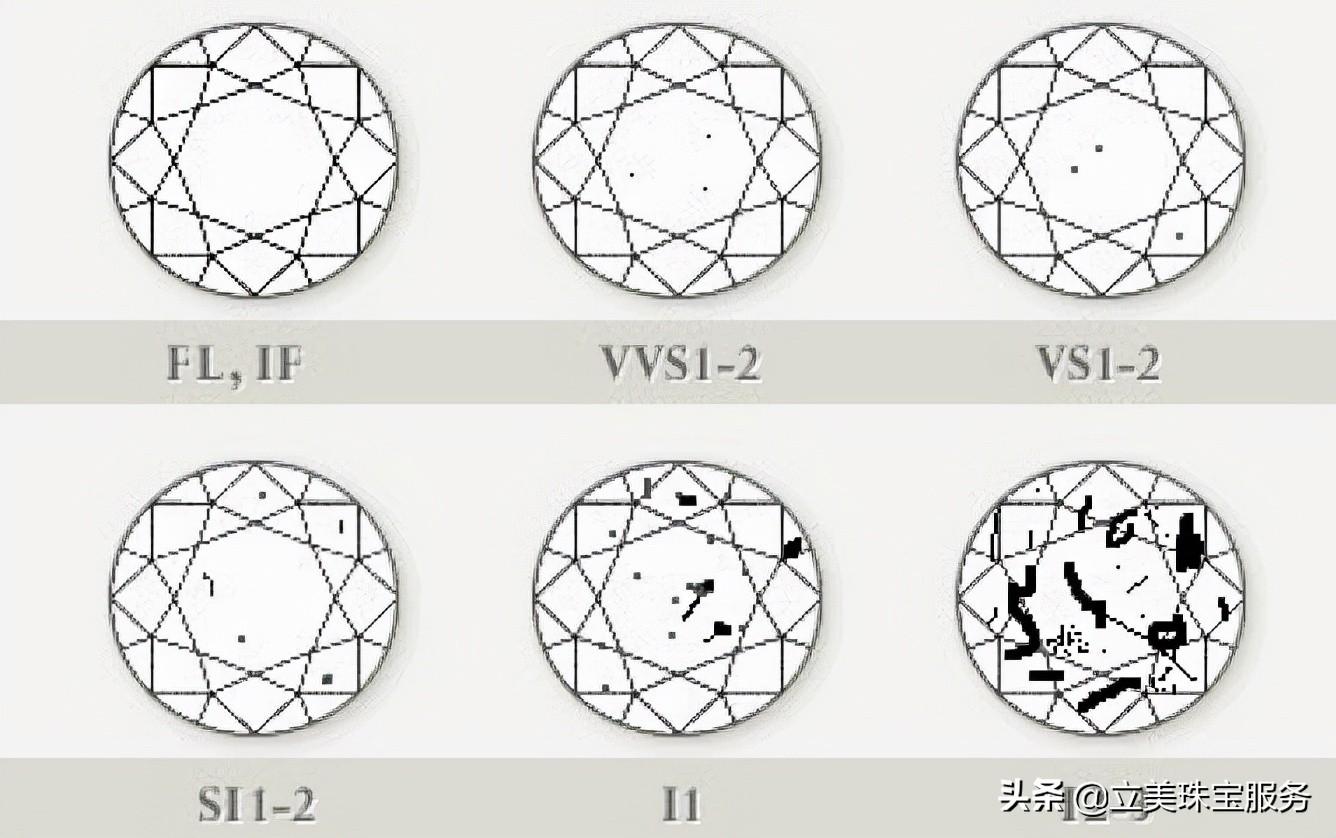 鉆石的凈度有11個等級,從FL,IF,VVS1,VVS2,VS 1,VS2,SI1,SI2,SI3,I1,I2,I3,可能很多人肉眼看不出瑕疵,但是SI1,SI2,SI3,I1,I2,I3等級的凈度鉆石,肉眼仔細(xì)看也是可以看到瑕疵的。