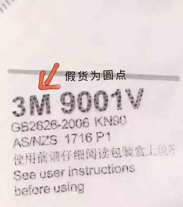 看印刷,3M口罩都是由激光打印的,打印痕跡呈45度斜角。