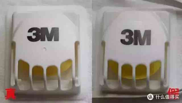 真口罩:3M標(biāo)識(shí)淺,和RMB側(cè)面的頭像水印類似。