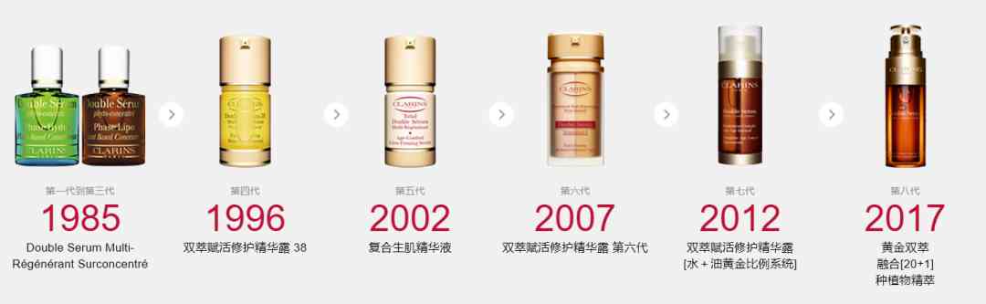 嬌韻詩黃金雙萃是一款非常經(jīng)典的主打植物提取物的抗衰老護(hù)膚品,.代產(chǎn)品于1985年上市,至今已有36年歷史,期間經(jīng)過多次產(chǎn)品升級(jí),目前更迭至第8代。