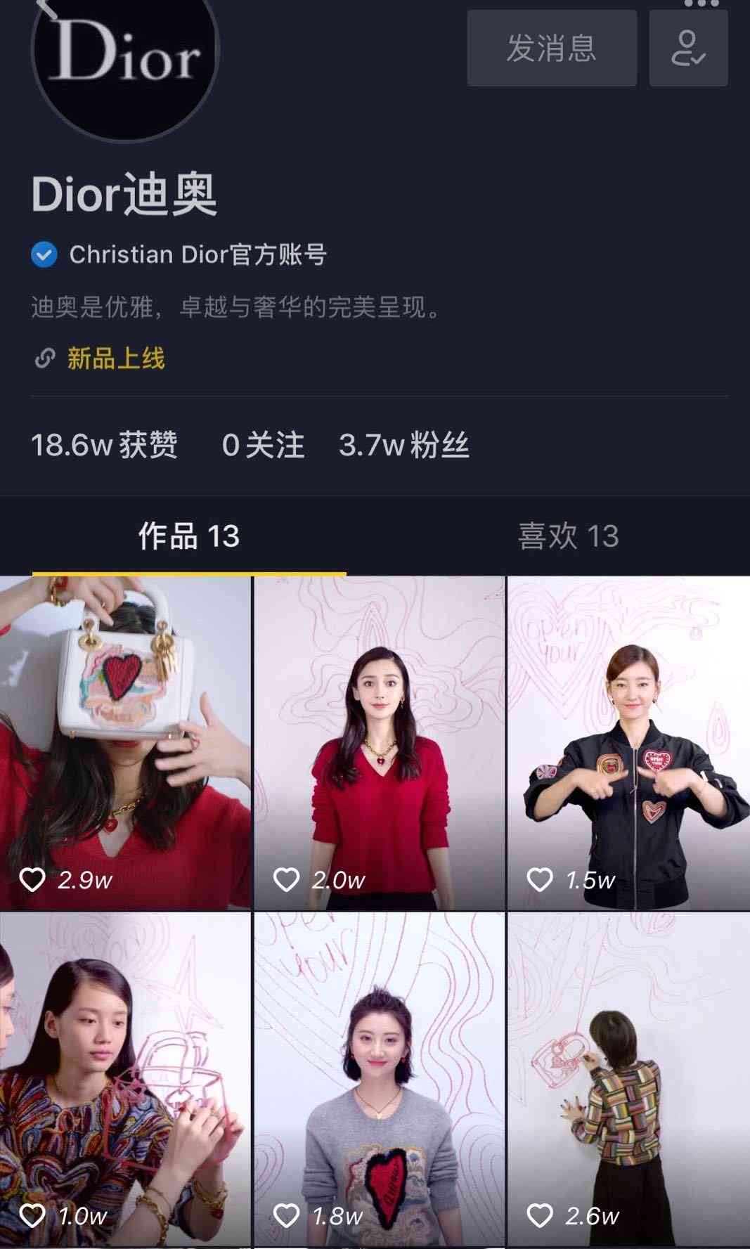 今年,Chanel在一個加V的抖音號上連續(xù)發(fā)布十幾秒的抖音定制版短視頻。狠拼流量的Dior索性在抖音上開了官方賬號。