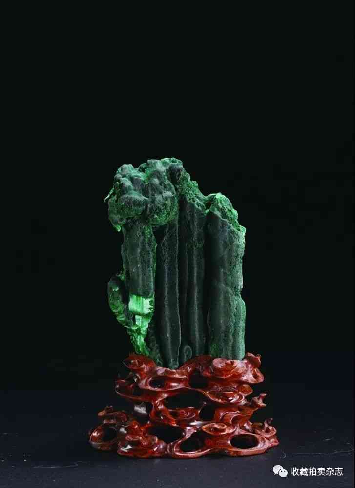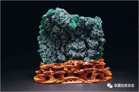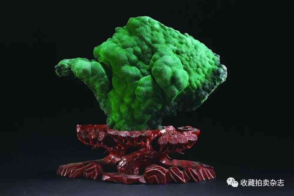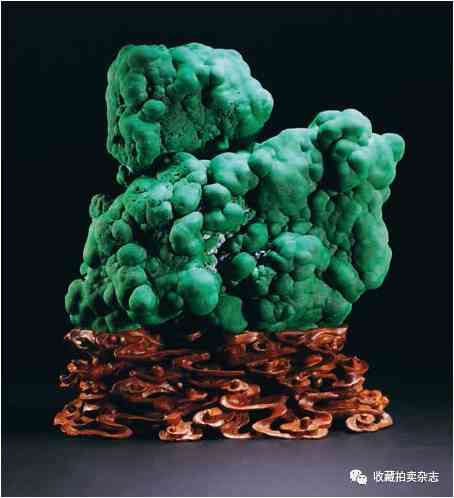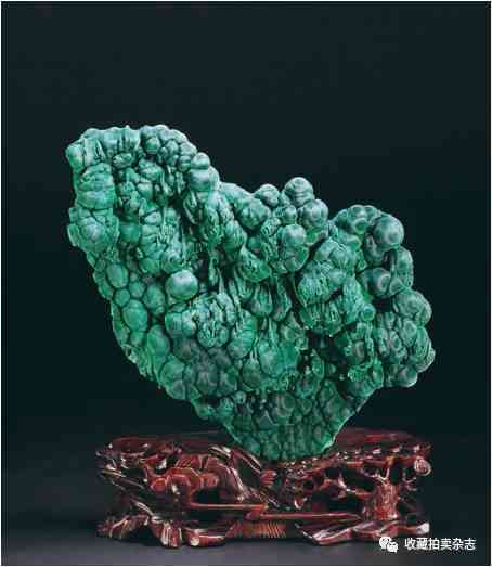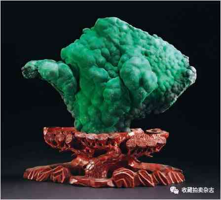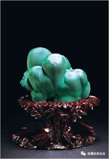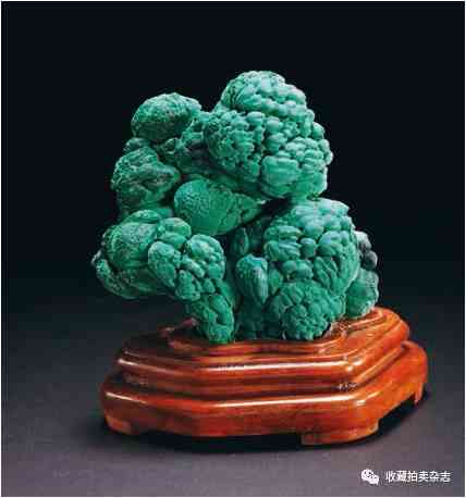 另外,還有一些賞析要素,是人為添加,如果適合得體,可起到錦上添花的效果,所以稱為輔助要素。對于孔雀石主要有名及座。