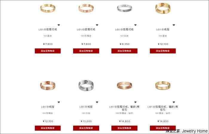 Cartier卡地亞官網(wǎng)正在售賣的Love系列戒指