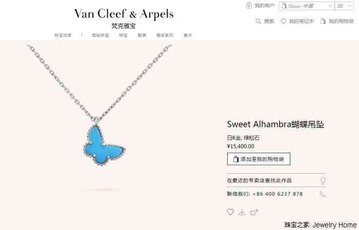 除了卡地亞,梵克雅寶也是很多古著店里能看到的品牌,其中Alhambra系列居多。相對來說,梵克雅寶價格高更高一點,同款綠松石吊墜官網(wǎng)售價15400人民幣,古著店內(nèi)也要賣到一萬出頭。