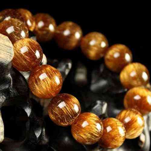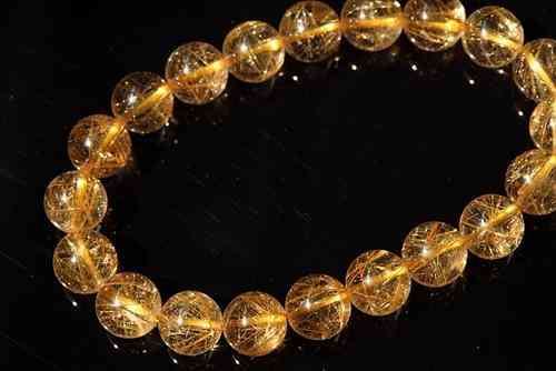 鈦晶發(fā)絲呈較粗的針狀或板狀極罕有的,即發(fā)絲粗密感覺象板塊狀,含針狀或板狀礦物質(zhì)鈦之發(fā)絲,鈦晶氧化后呈閃亮的金色(有些珠子還會(huì)含有極少的棕黑色發(fā)頭礦物質(zhì)),通常顏色上鈦晶感覺要深黃一些更金色一些,而發(fā)晶顏色淺一些。