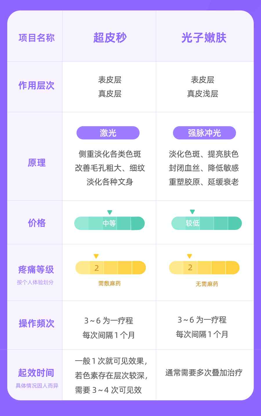 如果主要想解決臉上的色斑、色素沉著,可以優(yōu)先考慮針對(duì)性更強(qiáng)的超皮秒項(xiàng)目。