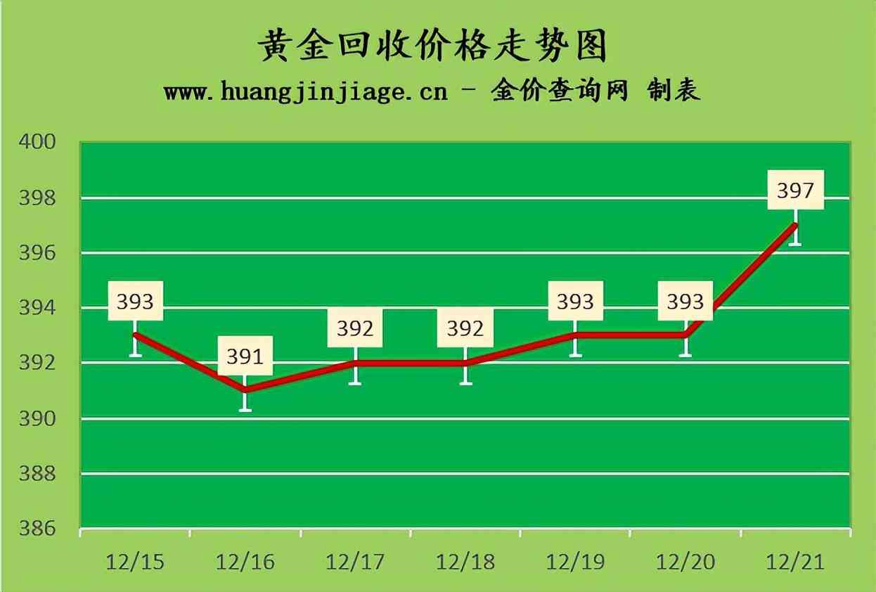 黃金回收價(jià)格397元/克,鉑金回收價(jià)格196元/克,鈀金回收價(jià)格351元/克,18K金回收價(jià)格294元/克,銀條回收價(jià)格4元/克。(黃金行情是波動(dòng)的,回收金價(jià)沒(méi)有固定標(biāo)準(zhǔn)。)