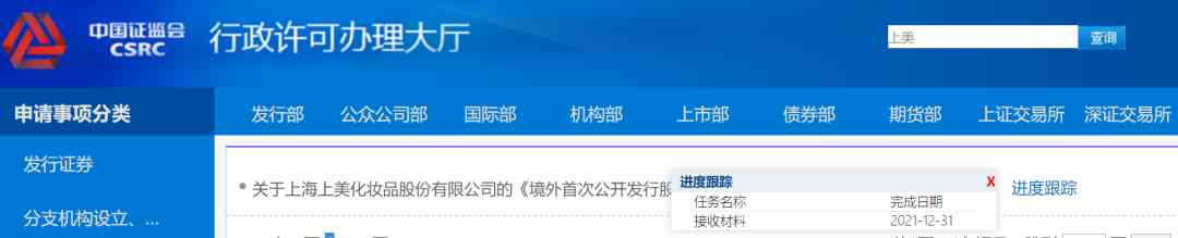 據(jù)中國證監(jiān)會官網(wǎng)信息,“韓束”和“一葉子”母公司——上美集團,已向證監(jiān)會提交境外上市申請,并于2021年12月31日完成接收材料任務(wù)。