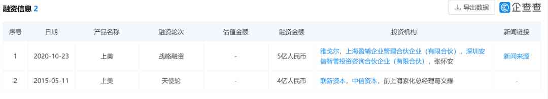 據(jù)企查查統(tǒng)計,上美集團僅有兩次融資。.次在2015年5月,天使輪融資4億元,引入了聯(lián)新資本和中信資本,還有前上海家化總經(jīng)理葛文耀的個人投資。此次融資轟動一時,成為當(dāng)時本土化妝品領(lǐng)域最大的融資案例。