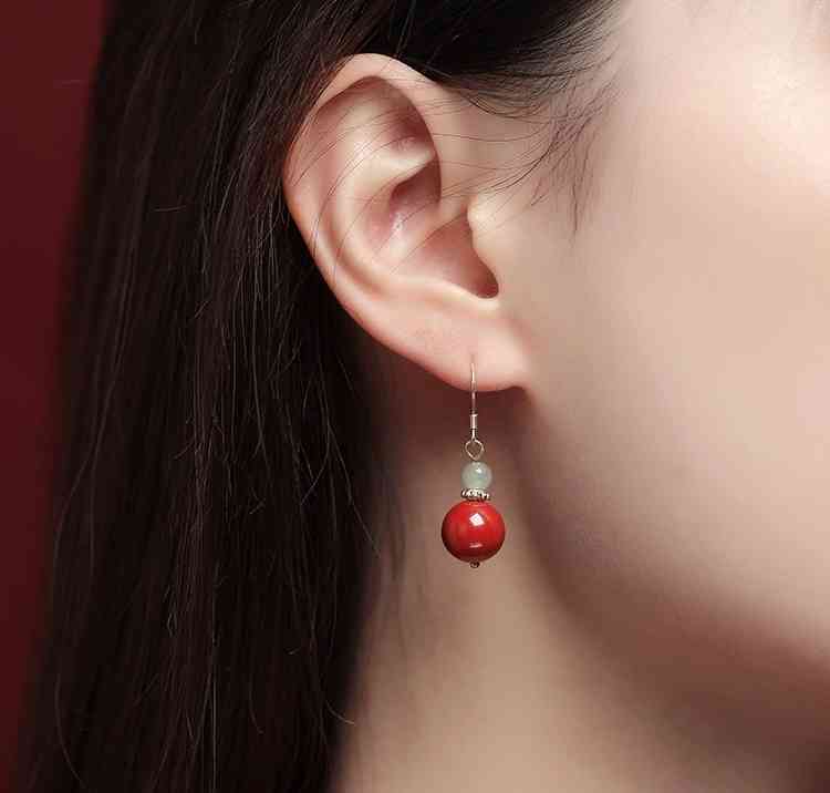 這款朱砂耳墜是很簡單大方的古風(fēng)設(shè)計(jì),有紫金砂、帝王砂兩款可以選擇,其中紫金砂款,偏暗紅的顏色更顯氣色,搭配旗袍是簡約又溫婉的美。耳鉤選用的也是S925純銀,不用擔(dān)心過敏可以放心佩戴。