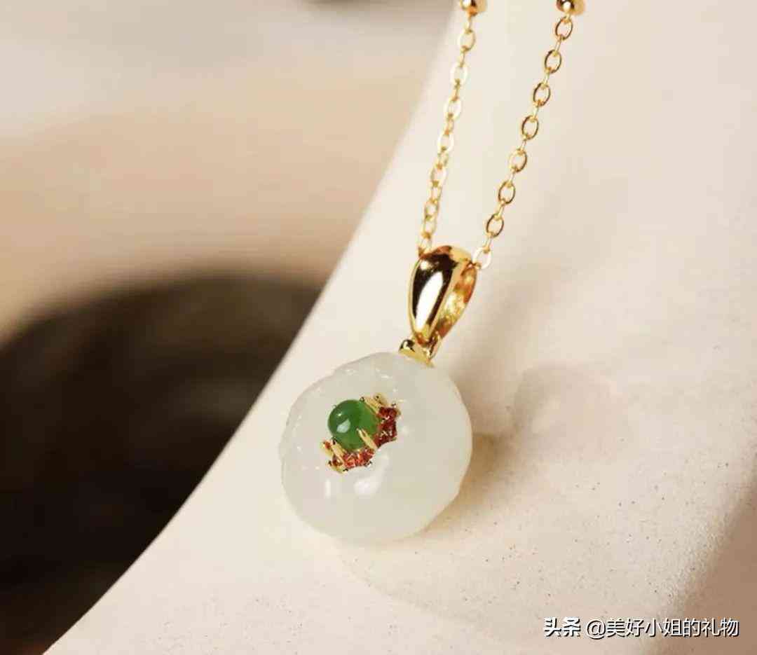 這款平安扣項(xiàng)鏈選用溫潤有光澤的和田玉,中間以南紅點(diǎn)綴,吊墜上方是冷琺瑯工藝的祥云圖案,配色柔和又不單調(diào),同系列還有耳環(huán)、戒指,淡淡古韻的首飾很適合媽媽優(yōu)雅的氣質(zhì)。
