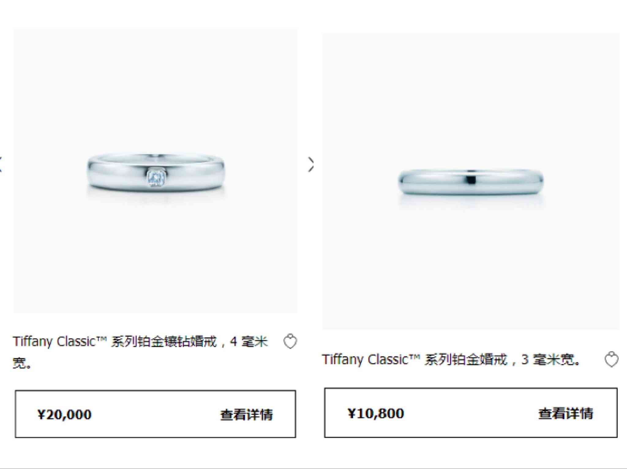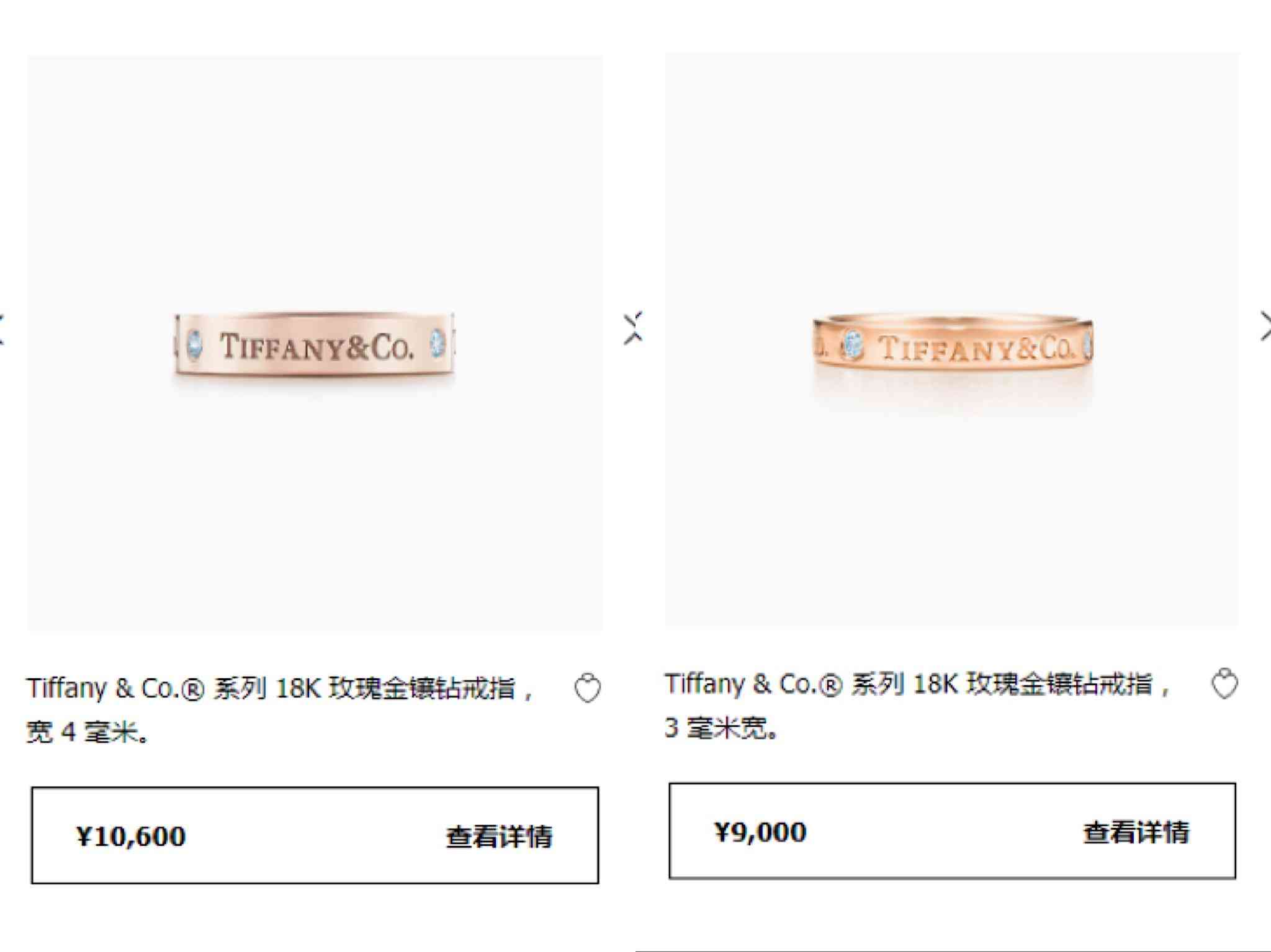 以上就是蒂芙尼經(jīng)典對戒款式的相關(guān)介紹,那么蒂芙尼對戒多少錢呢?其實通過以上圖片上的標價可以發(fā)現(xiàn),蒂芙尼對戒整體上價格基本自萬元左右,少數(shù)比較便宜的基礎(chǔ)款僅需5000多元,鑲鉆的在一萬元以上。所以蒂芙尼對戒多少錢和它自身款式是有較大關(guān)系的,基本是寬版對戒價格大于窄版對戒價格,鑲鉆對戒價格大于素金對戒價格。