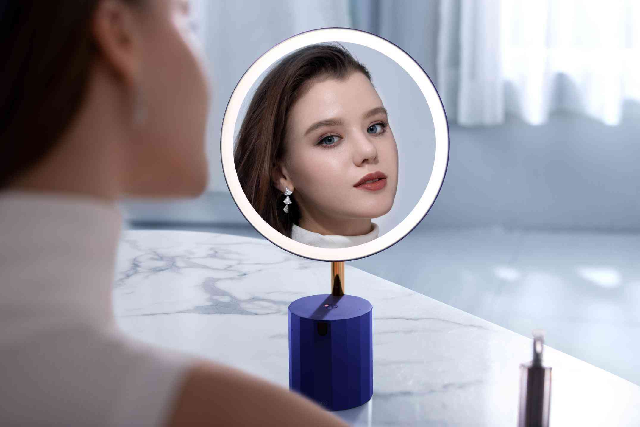 而XESS美妝鏡的光是模擬太陽光的自然光線,搭配360°的側(cè)入式環(huán)形光源以及84顆燈珠,亮度高達1100lm,光線清晰均勻卻不刺眼,顯色度甚至可以達到98%,鏡面中呈現(xiàn)的妝容非常真實。所以對著這個鏡子化妝,就能知道太陽光下的妝容效果什么樣,完全不用擔(dān)心化濃或者化淡的誤差發(fā)生,萌新練手時也更容易一些。