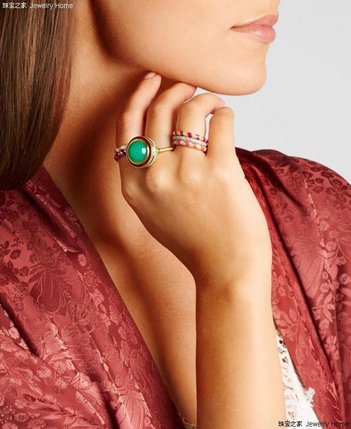 同樣,戒指的款式也沒有硬性規(guī)定,不過(guò)當(dāng)涉及到體格較大的雞尾酒戒指時(shí),大多數(shù)人都傾向于戴在右手,或右手的食指上。隨著橫向疊戴珠寶潮流的興起,從拇指到小指,很多女士會(huì)在右手的每個(gè)手指上佩戴一到兩枚戒指。
